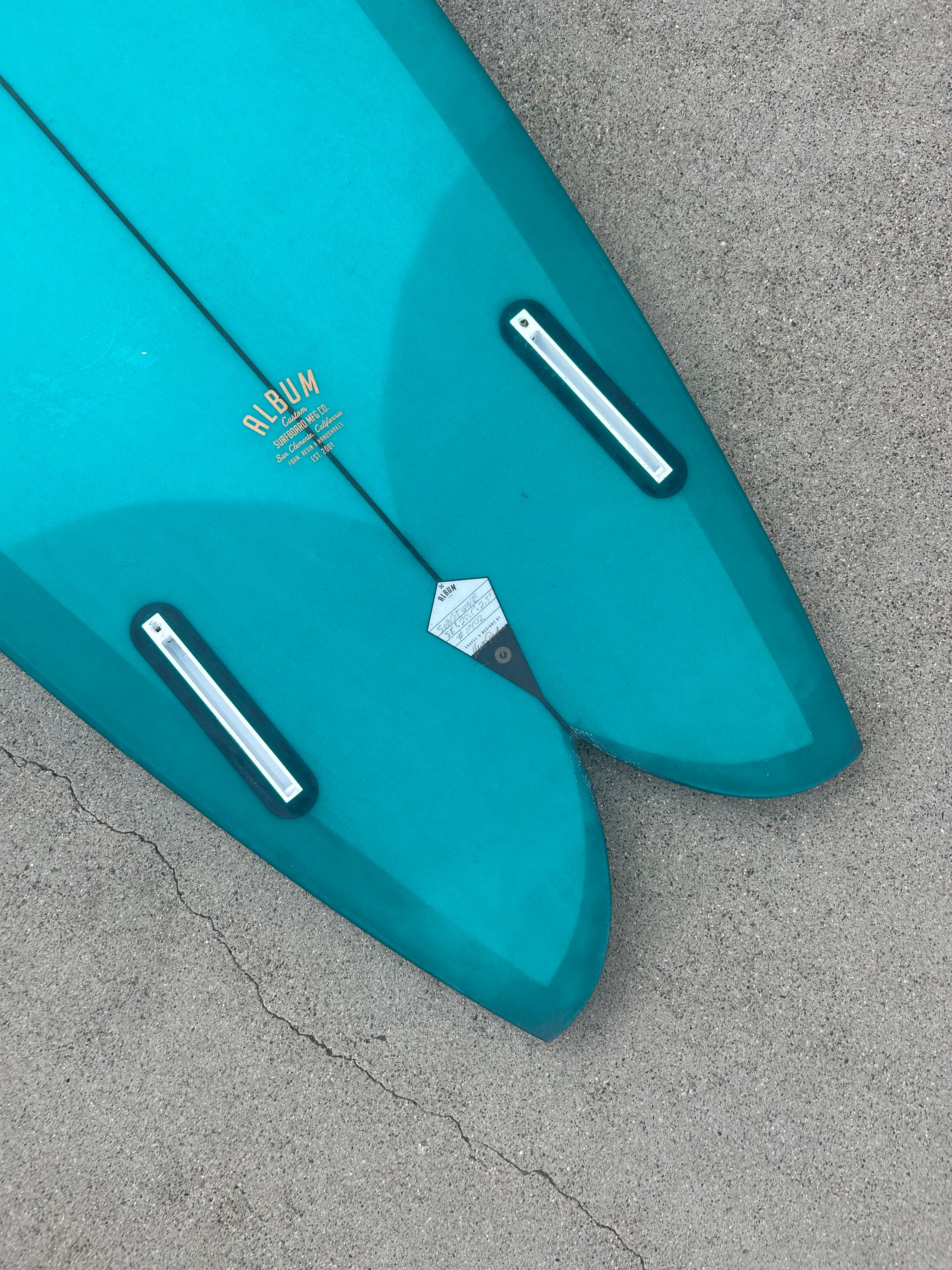 The Sunstone is the foundation of Asher Pacey's quiver, a baseline twin-fin fish for everyday surf and travel. This is the purest form of a classic fish that we make, an ode to Southern California. It has traditional fish roots that have been refined to perform and feel more alive. It has elements from our long-running UTF model, but with a new outline and a more pronounced vee off the exit, along with a little more double-concave under the back foot. Great paddler and gets up to speed right away. Ride it with keel fins or more of an upright twin template depending on where you're surfing. Size it 3-4 Liters above your performance shortboard.